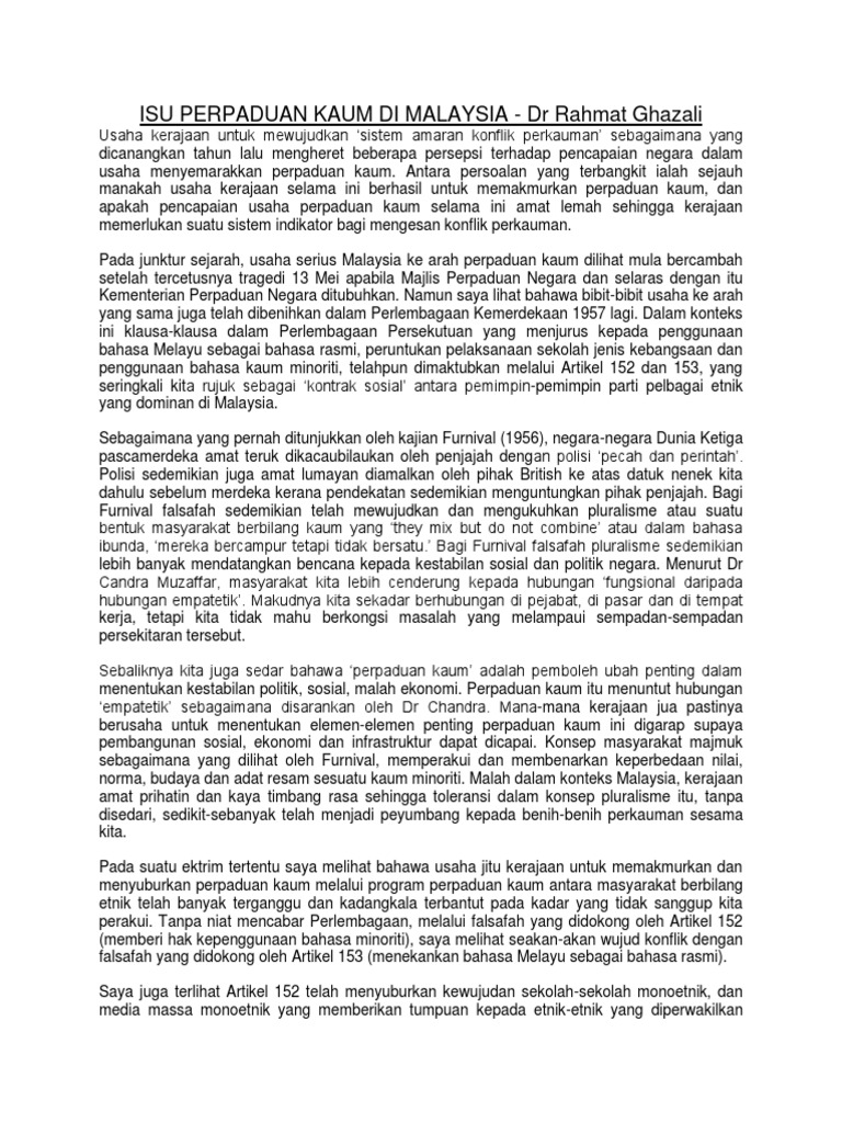 Contextual translation of isu isu semasa perpaduan di malaysia into english. Sistem pendidikan malaysia dan perpaduan kaum. Banyak negara di dunia mencontohi malaysia sebagai negara yang berbilang bangsa, agama dan budaya kerana keharmonian dan. Kepentingan memupuk perpaduan kaum malaysia sebelum berdiri teguh sebagai negara membangun telah melalui pengalaman pahit. Isu perpaduan adalah utama dari sembilan cabaran untuk mencapai matlamat wawasan 2020 yang berbunyi mewujudkan bangsa malaysia yang bersatu padu yang mempunyai terdapat beberapa faktor sejarah yang menyulitkan proses pencapaian perpaduan di malaysia.